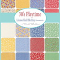 30’s Playtime by Moda Fabrics brings back the nostalgic charm of feedsack-inspired prints in cheerful 1930s style. Filled with ditsy florals, playful geometrics, and sweet novelty designs in bright, happy colors, this collection is perfect for vintage-inspired quilts, children’s projects, and anything that needs a touch of retro whimsy and timeless charm. 42 squares that are 5″ wide and 100% cotton