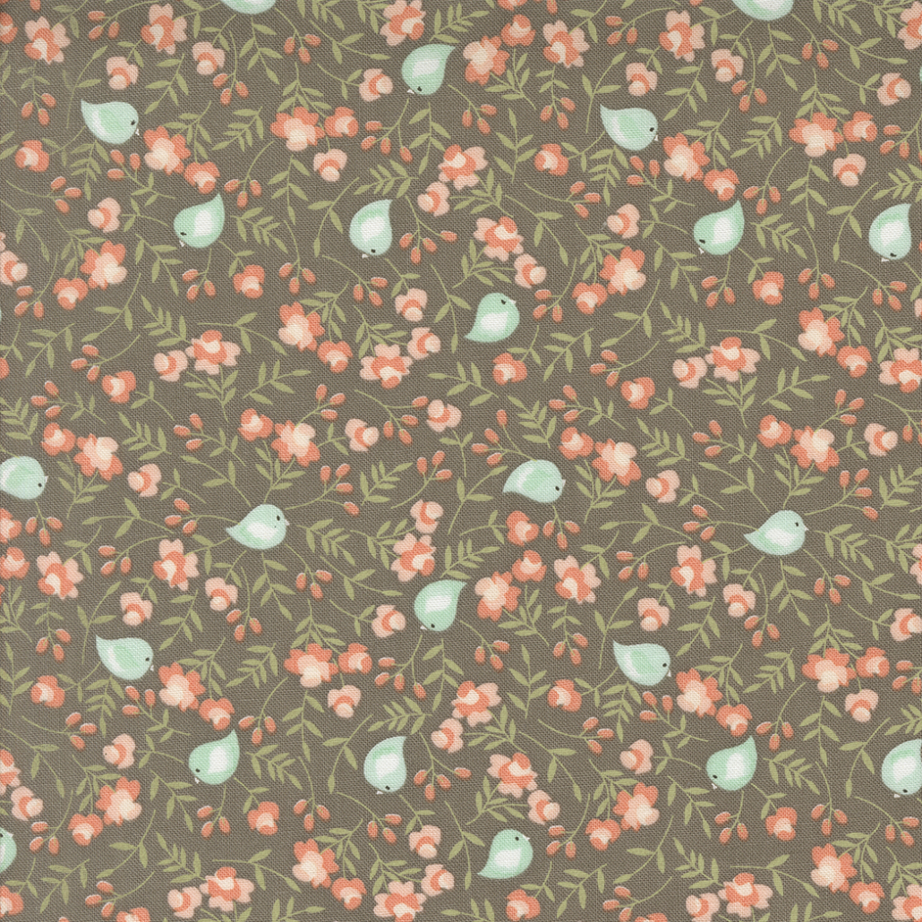 Floral prints in hues of peach, browns, and greens by Corey Yoder for Moda. 100% cotton