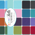 This collection by Annie Brady for Moda contains 42 pieces, 5″ square in bright vivid colors with a subtle crosshatch print. 100% cotton