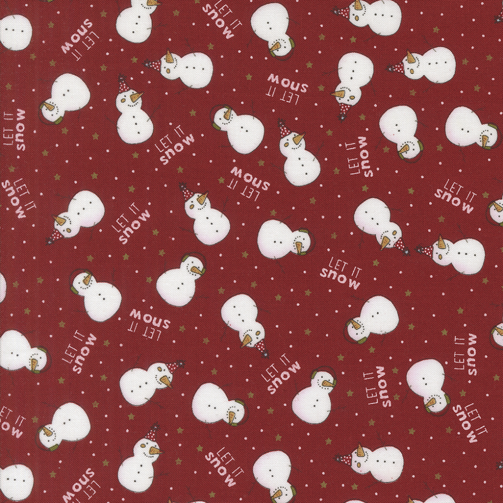 Emmitt & Ivy is a whimsical, snowman-themed Christmas fabric collection from Sweetwater for Moda Fabrics. This festive line centers on two playful snow children named Emmitt and Ivy, featured across prints alongside tossed evergreen trees, holiday ornaments, charming newsprint backgrounds, and classic pine and holly motifs. The palette includes cozy reds, soft pine greens, sky blues, crisp vanilla whites, and black accents-perfect for seasonal quilts, ornaments, and holiday stitching. The overall design aesthetic combines playful illustrations and nostalgic charm, delivering a cheerful and cozy winter collection ideal for festive handmade creations.