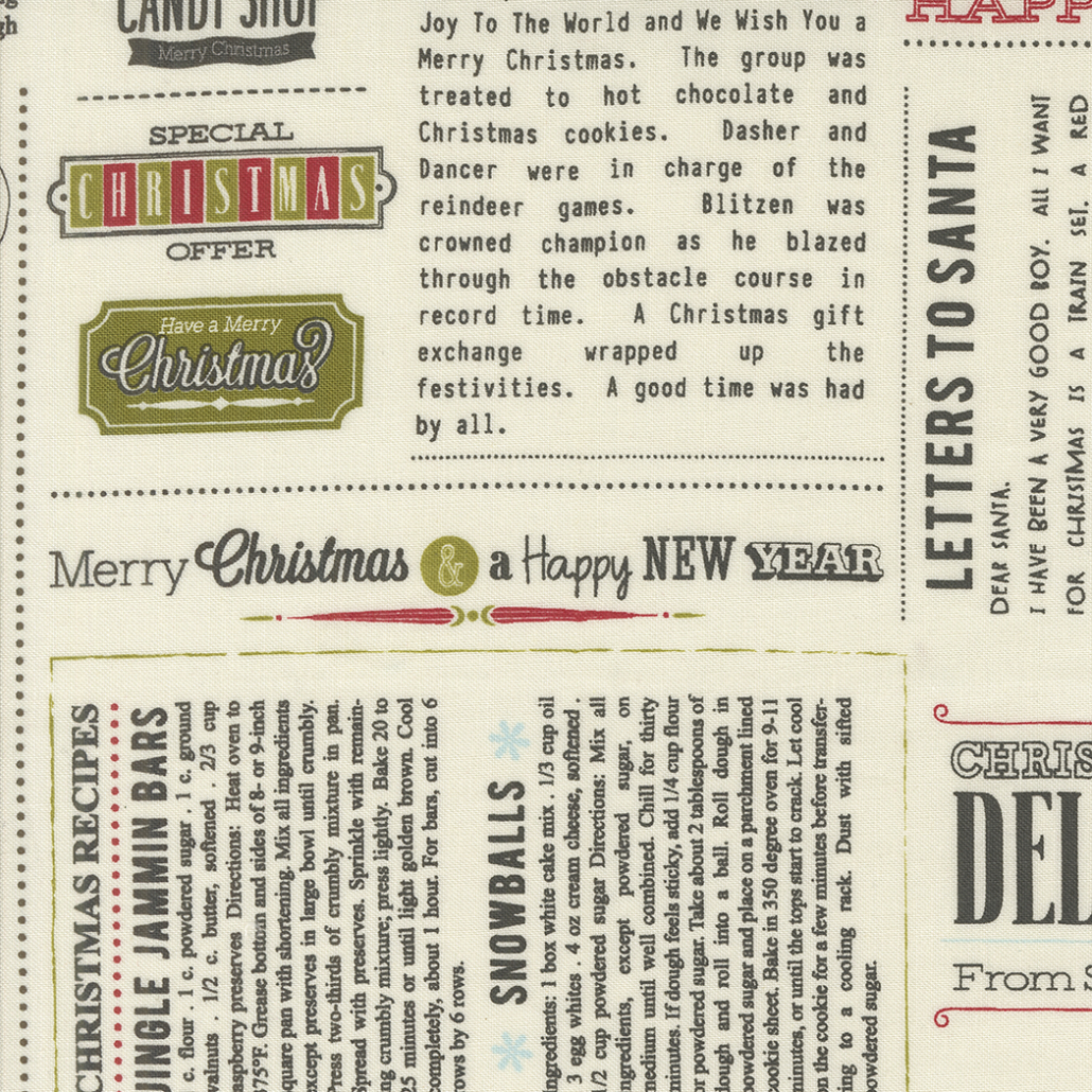 SKU: 752106824874 Categories: Christmas, Fabric, Sale Tags: Christmas, Evergreen Trees, Moda, Newsprint, Snowman, Sweetwater, Whimsical