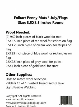 Patriotic Penny mat featuring waving flags. Finished size 8-1/2”