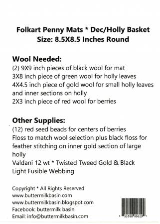 Holly Basket penny mat. Finished size 8-1/2in Round.