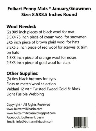Snowman Penny mat featuring adorable snowmen. Finished size 7-1/2in x 5-1/2in