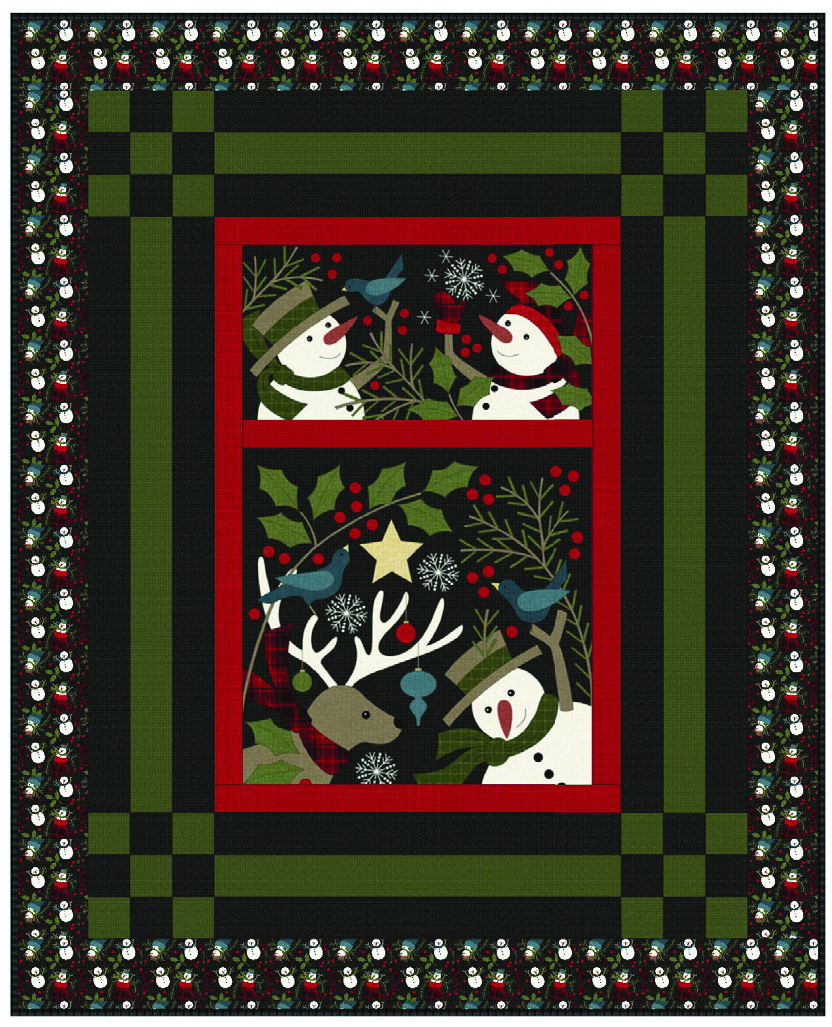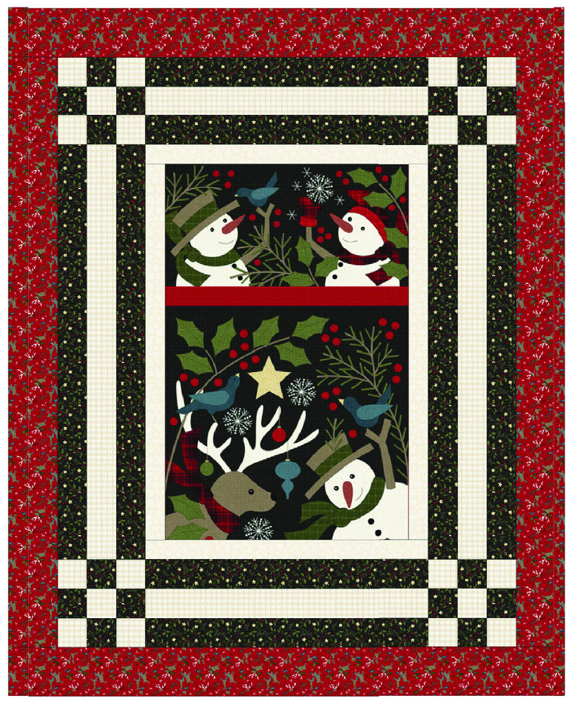Framed by Pocket Patterns made from the Maywood Studio flannel line Holly Jolly. It is beginner friendly and finishes 57-1/2 x 71