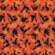 This vibrant fabric features a bewitching design with silhouettes of witches flying on broomsticks, accompanied by black cats and pumpkins, all set against a glowing orange background. The pattern is lively and festive, perfect for creating Halloween-themed projects or adding a touch of magic to any craft. The fabric’s unique glow-in-the-dark feature adds an extra layer of enchantment. By Kanvas for Benartex. 43/44″ wide and 100% cotton