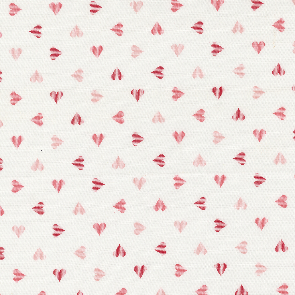 There is nothing not to LOVE about the collection Love Blooms by Lella Boutique for Moda. The hues of pink, red and white with flowers are hearts are true to her style. 44/45″ wide and 100% cotton