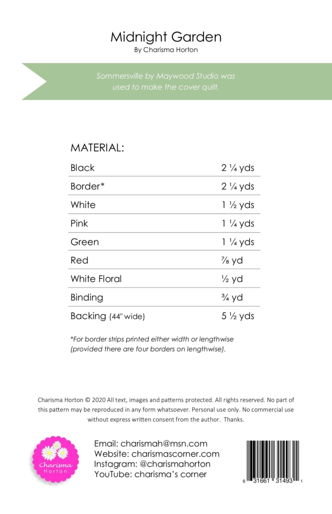 Midnight garden is a lovely traditional quilt. It’s east to construct and showcases a beautiful line of fabric. Finishes 74″ x 89″