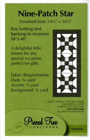 Index card sized laminated table runner pattern. Finished project size 14-1/2 x 34-1/2