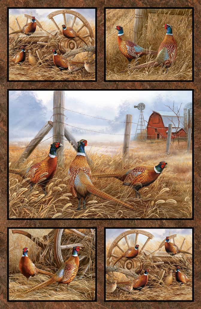 Pheasant Grove by Northcott is a richly detailed, nature-inspired fabric collection that celebrates the beauty of the autumn countryside. Featuring elegant pheasant artwork, layered foliage, woodland textures, and scenic landscapes, this line brings the warmth and tranquility of the outdoors into your sewing room. The palette—filled with deep browns, rustic golds, mossy greens, and warm earth tones—creates a cozy, sophisticated feel perfect for fall projects. Ideal for quilts, cabin décor, wall hangings, and gifts for nature lovers, Pheasant Grove captures the timeless charm of a quiet woodland retreat.