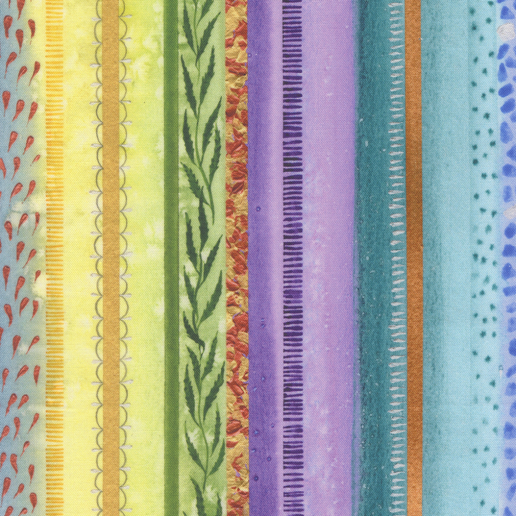 Featuring dahlias, peonies, roses, daisies, and lush foliage, Soulstice bursts with expressive blooms in a radiant rainbow palette of pinks, purples, teals, greens, navy, and sunny brights. Richly mottled tonals, mosaics, and coordinating basics provide texture and balance, making the collection ideal for both statement quilts and mix-and-match projects.