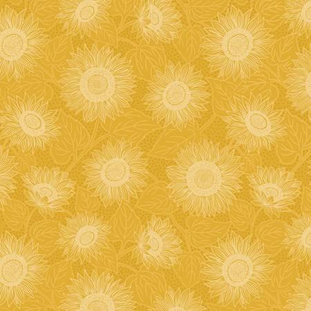 Bright yellow sunflowers on a yellow background from Lewis and Irene Fabrics. 44/45″ wide and 100% cotton