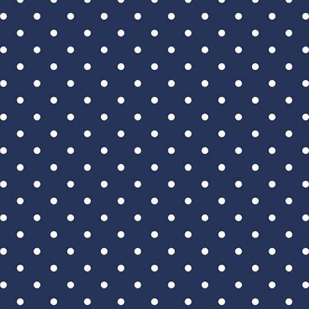 White Swiss dots on navy background from Riley Blake Designs. 43/44″ wide and 100% cotton