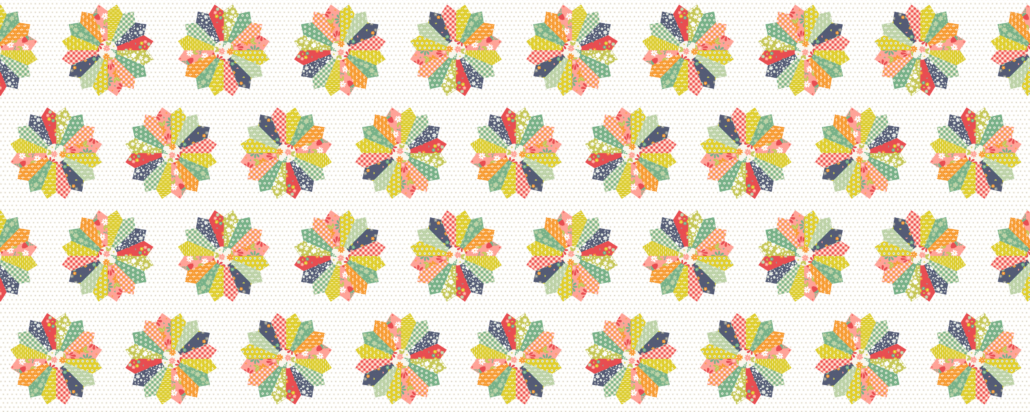 Cheater Dresden Plate wide backing from the Raspberry Summer collection by Sherri & Chelsi for Moda. 60″ wide and 100% cotton
